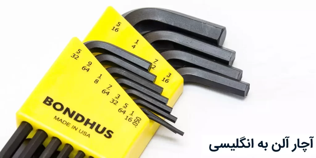 در زبان انگلیسی برای آچار آلن سه کلمه Hex Key, Allen Wrench و Allen key به کار میروند. البته Hex key معمولتر است.